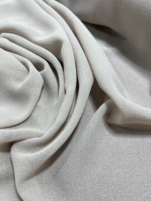 100% Polyester Crepe – Light Mushroom – open weave – 1.12cm wide – $12.00 per mtr