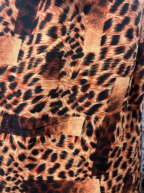 100% Rayon – (S2-RA1) -Smaller Animal Print of Rich two Toned Rust with Tiles – 100% Rayon – $18.00 per mtr