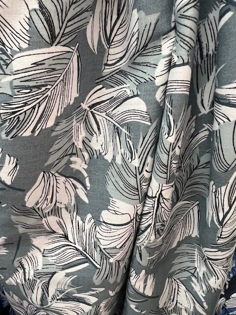 DC67 – Dress Cotton – White and Grey Fern leaves on Mid Grey 100% Dress Cotton – 1.12cm wide – $16.00 per mtr
