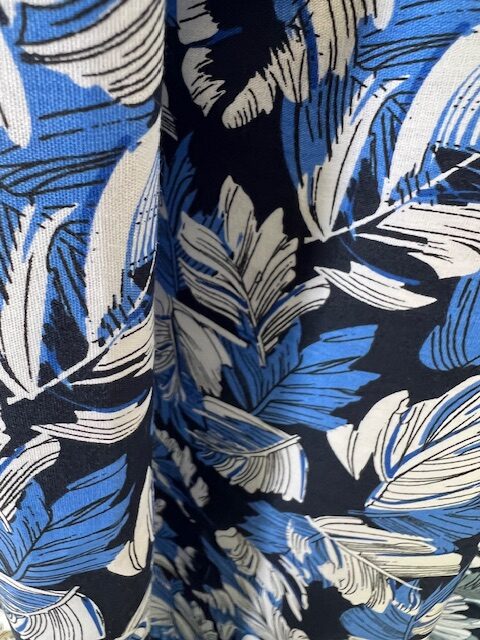 DC65 – Dress Cotton – White and Royal Fern leaves on Dark Navy 100% Dress Cotton – 1.12cm wide – $16.00 per mtr
