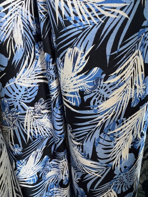/ DC69 – Dress Cotton – Light Blue and White Fern Leaves on Dark Navy 100% Dress Cotton – 1.12cm wide – $16.00 per mtr