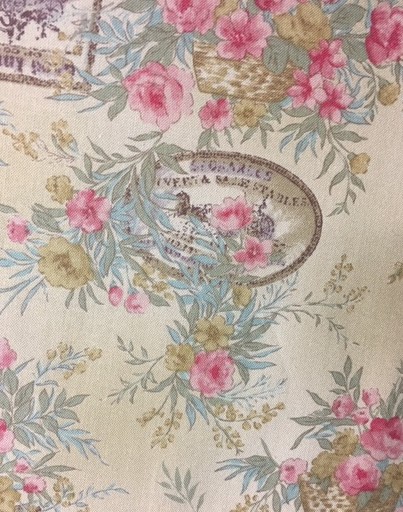 Flowers in a basket, Tan background- 100% Cotton Craft $15.00 Per Mtr 1.10cm Wide quantity