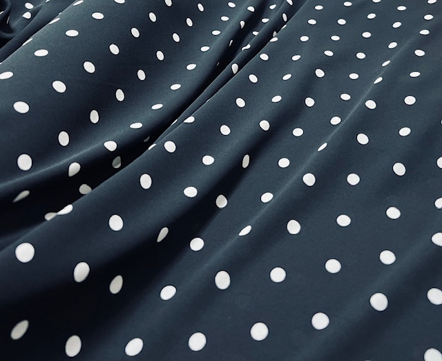 P111 – 100% Polyester – Georgette – Black with Small White Spots – 150cm wide – $18.00 per mtr