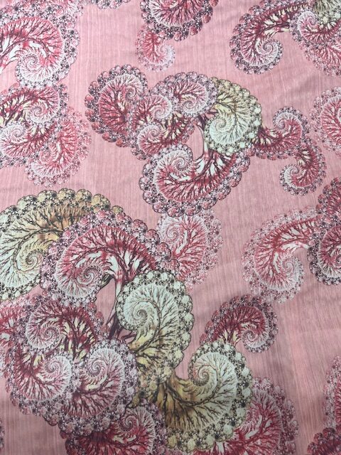 / P176 – Coral Reef in Pink and Coral colourings – Double thickness 100% Polyester – 150cm wide – $16.00 per mtr