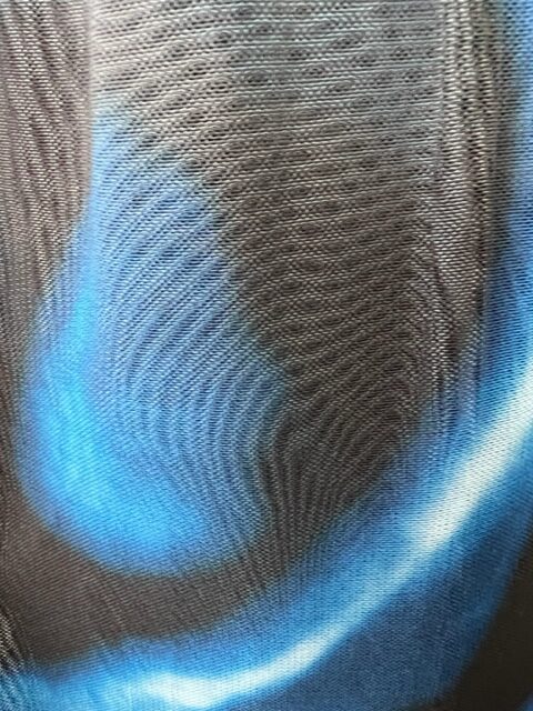 Printed Body Mesh – (BM8) – Electric Blue, Black and White Abstract – 100% Nylon – 165cm wide – $22.00 per mtr