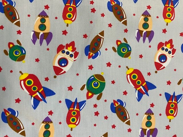 Rocket Ship – Light Grey – 100% Cotton Craft – 1.10cm wide $15.00 per mtr