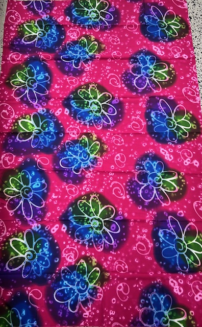 100% Polyester – Best as dries fast, doesn’t fade or stick to wet skin