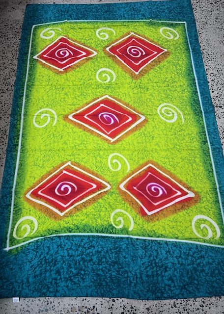 Summer Sarongs – (N) – Aqua Blue border with lime and pink Triangles – 170cm Long x 110cm wide – 100% Polyester – $15.00 each