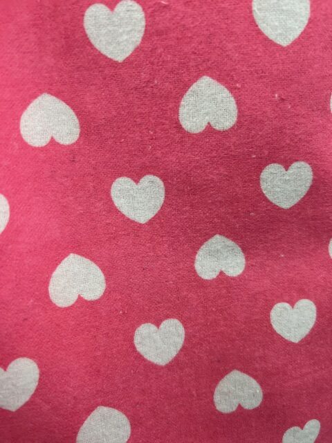 Wincyette – #12 – 100% Brushed Cotton – Mid Pink with White Hearts – 150cm wide – $14.00 per mtr
