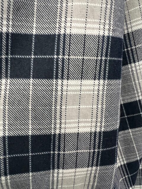 Wincyette – #21 – 100% Brushed Cotton – Black, Grey, Tan and White Tartan – 150cm wide – $14.00 per mtr