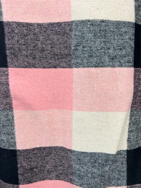 Wool Blend – S9-Y – Pink Cream and Charcoal – Large Squares – Double Thickness – 80% Wool – 20% Polyester – $49.00 per mtr